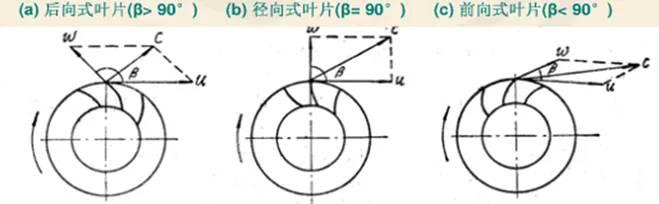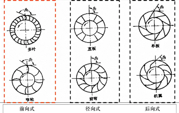 離心風(fēng)機(jī)三種主要的葉輪形式:離心風(fēng)機(jī)的葉輪相比軸流風(fēng)機(jī)的葉輪復(fù)雜的多,工藝上要求較高,根據(jù)葉輪出風(fēng)口端的葉片角度可將風(fēng)機(jī)葉輪分為前向型、徑向型、后向型。