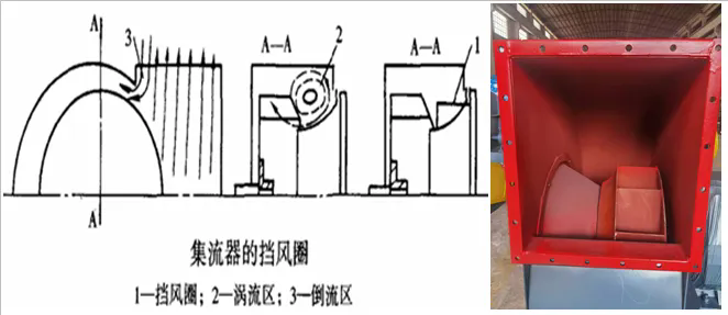 為了減弱渦流,控制倒流,在風(fēng)機(jī)內(nèi)部進(jìn)氣口部位加裝了一個(gè)擋風(fēng)圈。