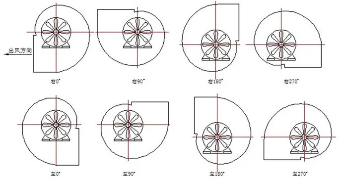 離心風(fēng)機(jī)的出風(fēng)口方向示意圖:
